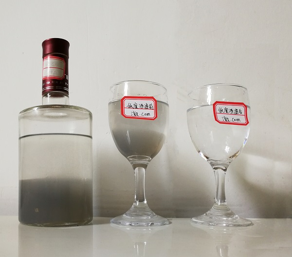 降固性物超標(biāo)、新酒催熟陳化一年、低度酒抗凍零下15度低溫不渾濁、經(jīng)該機(jī)過濾后白酒澄清度100%,可直接灌裝裝瓶。